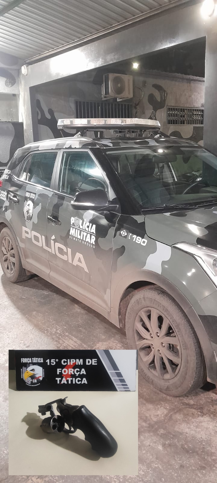 A Equipe Força 90 por volta das 15h30min. Do dia 28 de maio realizou uma abordagem a dois indivíduos em um veículo VW Gol branco no bairro Cristo Rei, em Várzea Grande. Durante a busca veicular, foi localizado um revólver calibre 38, marca Rossi, embaixo do banco do passageiro.