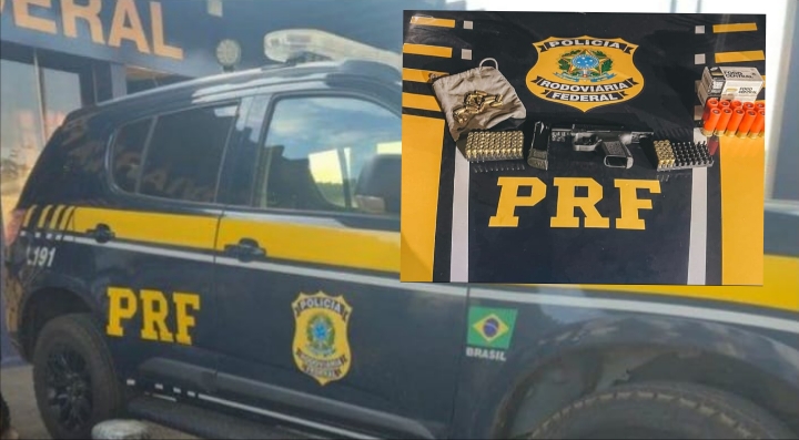 A equipe da PRF através de fiscalização da BR, conseguiu apreender armas, munições e uma pequena quantidade de entorpecente.