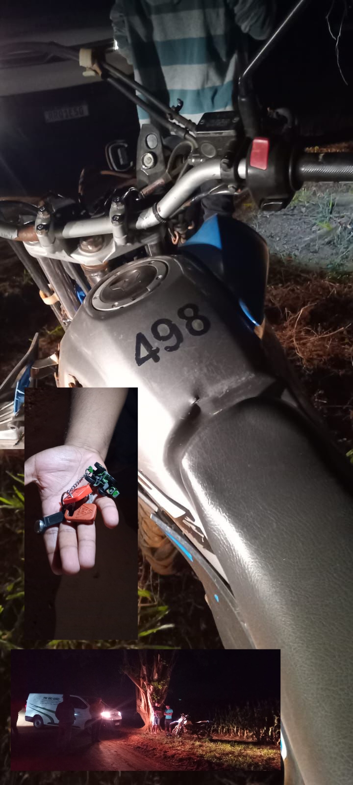 Policiais militares do 5ºBPM em Garça Branca (distrito de Pedra Preta-MT) foram acionados via Ciosp informando que um funcionário da fazenda Tropical foi encontrado caído junto a uma motocicleta NXR Bros, de cor azul, com sinais de colisão contra uma árvore.