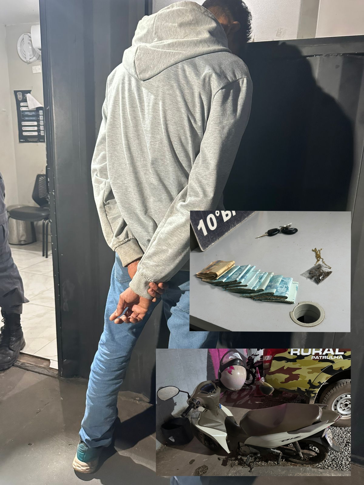 Durante a revista pessoal, também foi encontrada uma porção de maconha com o suspeito além do dinheiro.