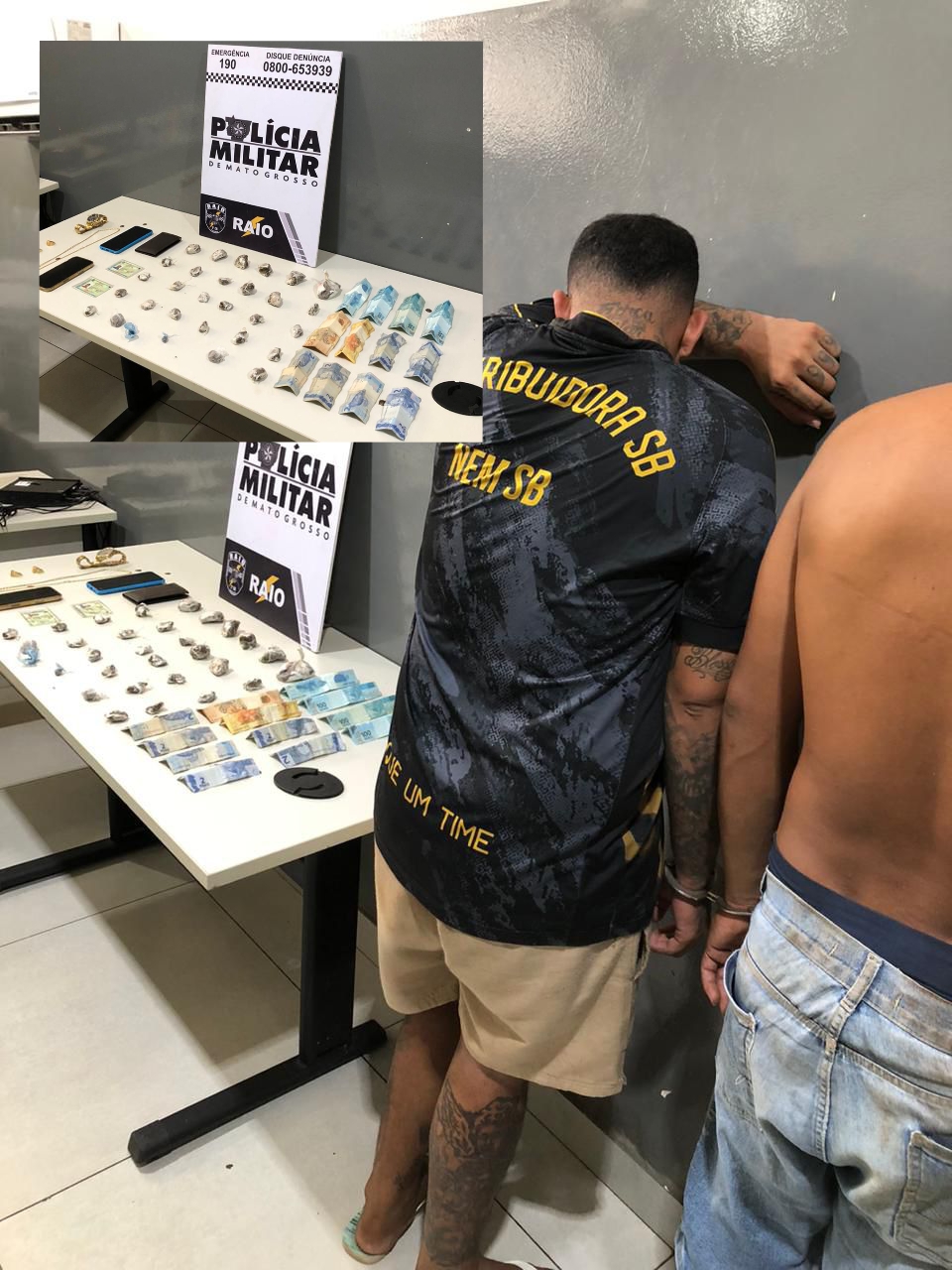Dois homens foram detidos pela Polícia Militar equipe raio 05 na noite de segunda feira 03/11em Várzea Grande, no bairro Jardim Glória I, suspeitos de tráfico de drogas.