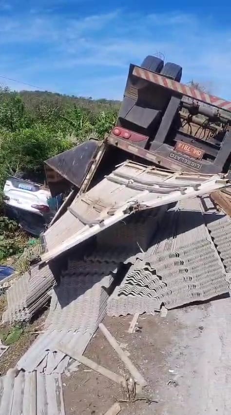 O sinistro envolveu uma carreta, que estava carregada com telhas de amianto, e um veículo de passeio da Universidade do Estado de Mato Grosso (Unemat).